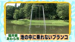 池の中、泳がなければ行くことができない場所に ブランコがポツンと置かれている…。 このブランコが設置されているのは「金津創作の森」で、 ブランコは遊ぶための遊具ではなくアートとして展示されている。 ちなみに、作品のテーマは「乗りたくても乗れないもどかしさ」だそう。 ![]() |