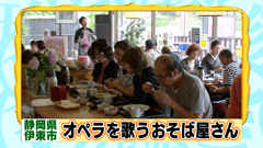 本格的な十割そばが楽しめる「そば処 明日葉」では、 お客さんの食事中、店主の武田さんがオペラを熱唱!! オペラが好きで独学で発声などを学び、今では年間40回ほど コンサートを開催しているという武田さんは、 お客さんに楽しんでもらおうと歌声を披露しているという。 |