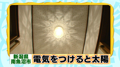 投稿者・廣井さんのお宅の洗面所にある 電球を点すと天井に太陽のような模様が浮かび上がる。 電気カバーの模様の反射が太陽のように見えるのだとか。 |