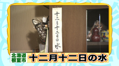 市内にある民家や会社、商店などあらゆる場所に 「十二月十二日の水」とだけ書かれた 不思議な紙が貼られている光景。 根室市内の一部の人や会社は おまじないとしてこのお札を貼っているそうで、 「十二月十二日の水」には様々ないわれがあるが、 一説によると、十二月十二日は大泥棒・石川五右衛門が 処刑された日であるといわれていることから、 関西では日付を書いて逆さに貼って泥棒除けの おまじないにしている地域があり、それが根室に伝わり、 根室が漁師町であることから火事除けや水難事故から 船を守るお守りに変化したのではと考えられるそう。 |