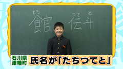 小学5年生の館くんのフルネームは「たちつてと」! 漢字では「館伝斗」と書くこの名前、 小さな頃から「たちつてと」という名前になりたいと 夢見ていた館くんのお父さんが、 自分の子供に夢を託してつけた名前だという。 館くん本人も「楽しくて会話が生まれる名前」と、 自分の名前がとても気に入っているそうです。 |