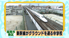 福岡市立宮竹中学校のグラウンドの真ん中を 新幹線が走っている! もともと新幹線の線路が通っていたところに建っていた 工場の跡地を譲り受けて学校が建てられたため、 新幹線がグラウンドの中を通る学校になったという。 |
