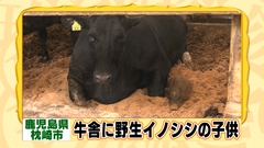 畜産業を営む山下さんの牧場で、1ヵ月前から 牛舎に野生のイノシシの赤ちゃんが住みついたという。 やってきた頃ピーピー鳴いていたことから ピーちゃんと名づけられたイノシシの赤ちゃんは、 おそらく親とはぐれてこの牛舎に住み着いたと考えられる。 ピーちゃんは牛舎の牛とスキンシップを取ったり まるで親子のように仲良く寝たりしているという。 |