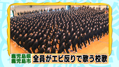公立商業高校では日本唯一の男子校である 鹿児島商業高等学校では、 生徒全員が思い切り背中を反った状態で校歌を歌う。 鹿児島商業高校は運動部の活躍が目覚ましく 応援する機会が多いそうなのだが、12〜13年ほど前に 「声が小さい」ということで、大声で応援するために “エビ反り”が生徒たちの間で自然発生的に生まれたそう。 ![]() |