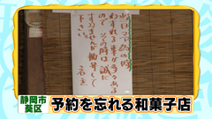 ご夫婦2人で切り盛りしている昔ながらの和菓子店 「増田屋支店」の店先には「当日予約の時 わすれる事が多々あるので その時は誠にすみませんが 勘弁して下さい。」と書かれた貼り紙がある光景。 1日70本ほど製造するみたらし団子(1本110円)が 予約が多いのだが、当日予約の電話があった時、 店が忙しいと忘れてしまうこともあるため 先に貼り紙をして謝っているのだとか。 |