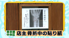 店のドアに手のレントゲン写真に「店主骨折中。 もうしばらく時間を下さい。まだくっつきません…」という 文章が書かれた貼り紙のあるお店の光景。 このお店は「晩酌処 ごふくの丘」。 店主の佐藤さんが事故で怪我をして休業している間、 お客さんに店がつぶれたと誤解されないように 分かりやすくレントゲン写真を貼ったそう。 現在は、レントゲン写真に「店主復活!!くっつきました!! またよろしくお願いします。」という貼り紙をして お店を営業しているそうです。 ![]() |