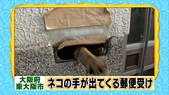 民家の郵便受けに郵便物を入れようとすると… 中からネコの手が出てくる!! こちらのお宅の飼い猫は外の様子が気になるのか、 郵便物が届くたびに手を出すのだそう。 |