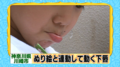 嶺太くんの弟の峻梧くん(5歳)は、 ぬり絵をする動きに合わせて下唇が動く。 ぬる動きがゆっくりになると下唇の動きもゆっくりに、 速くぬると峻梧くんの下唇も速く動く。 峻梧くんの下唇は、文字を書いている時には 全く動かないのだが、なぜかぬり絵の時だけ動くそう。 |