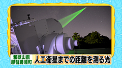 緑色の謎の光線が天に向かって真っすぐのびている! 光線の発信源は海上保安庁の下里水路観測所で、 緑の光は人工衛星までの距離を計測するためのもの。 海図の作成などに使用するデータを取るために 人工衛星へ向けて緑色の光線を放ち、 反射の時間で距離を測っているのだそう。 この観測によってプレートの変動もわかるそうで、日本列島が 西北西に毎年3cmほど移動していることも確認されたという。 |