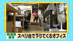 カッティングシールのデザイン・販売をする 「切り文字屋オッケイ」には社内にスベリ台があり、 お客さんが来るとスベリ台で降りて出迎える。 1階は受付兼作業場、2階はデスクフロアになっていて 社長席の脇にスベリ台の入り口がある。 このスベリ台は、「スベリ台を滑ってきたら楽しいよね」という 冗談話をきっかけに、 従業員の息抜きになればと遊び心で作ったという。 |