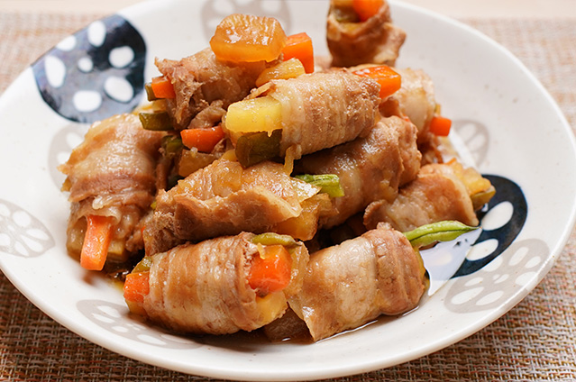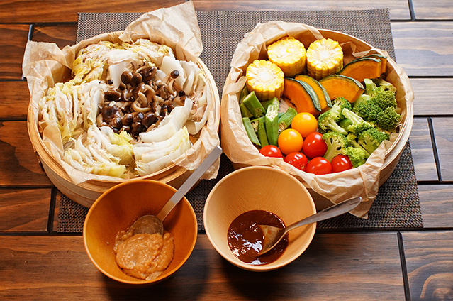 『彩り野菜と豚肉ミルフィーユのせいろ蒸し』
