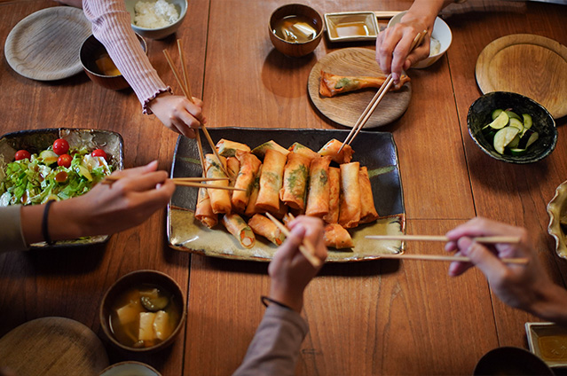 『四姉妹の大好物!じゃがいもとエビと大葉の春巻き』