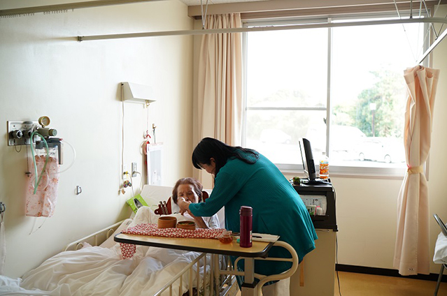 週末は電車を乗り継ぎ3時間かけ、長期入院中のお母さんのもとへ通います。