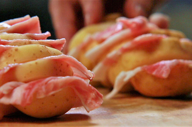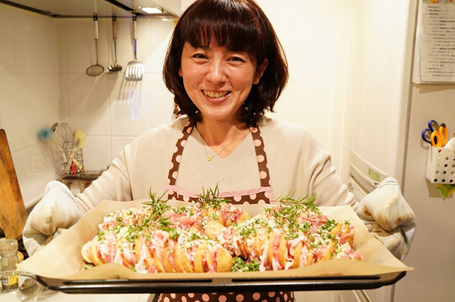 厚めにスライスしたじゃがいもの間に豚肉を挟んでオーブンで焼いたもので、食べ応えのあるメニューに息子さんも大満足!