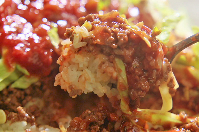 興さんは、20年ほど前に知人からタコライスの素とサルサソースをもらったのがきっかけで、タコライスを作るようになりました。
