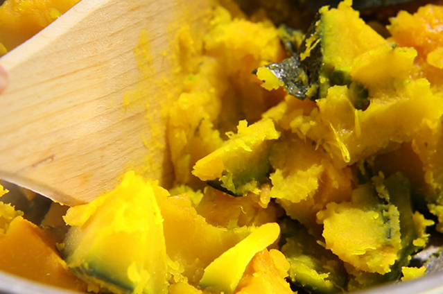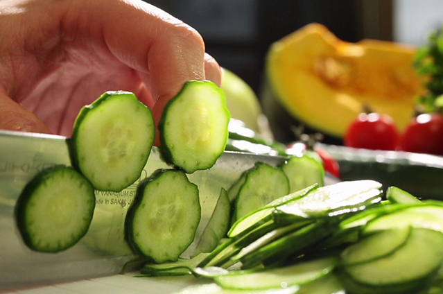 カボチャ、きゅうり、玉ねぎを使い、食材のしっとりとした味わいとシャキシャキした食感が美味しく、黄色とグリーンが美しい春の色。
