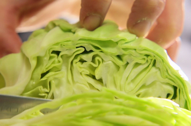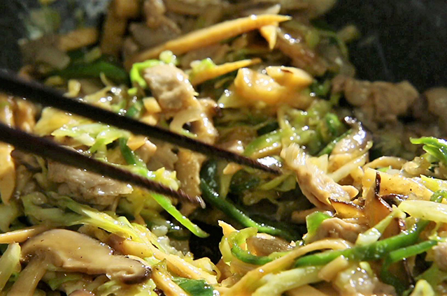 餡の中身はキャベツ、豚肉、干し椎茸、たけのこ、ピーマン。
