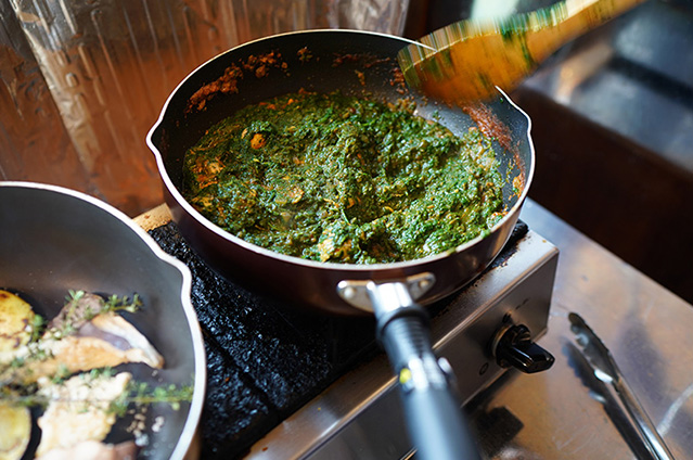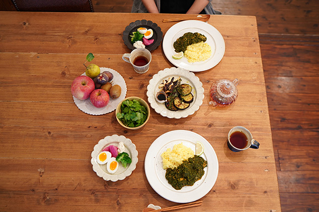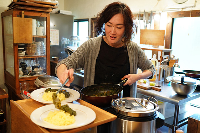 採れたてのほうれん草を使って煮込むカレーは絶品。美味しいメニューを考える毎日が、今の幸せです。