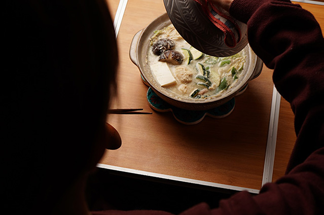 一人鍋用の土鍋も用意して、ゆっくり味わう優雅な時間…寒い冬のいちばんの楽しみです。