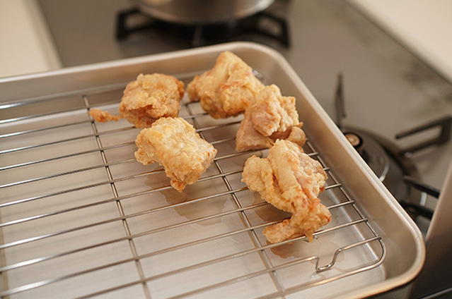 温度を調整して2回揚げることで、外はパリッと、中はしっとりとした最高の唐揚げができるそうです。
