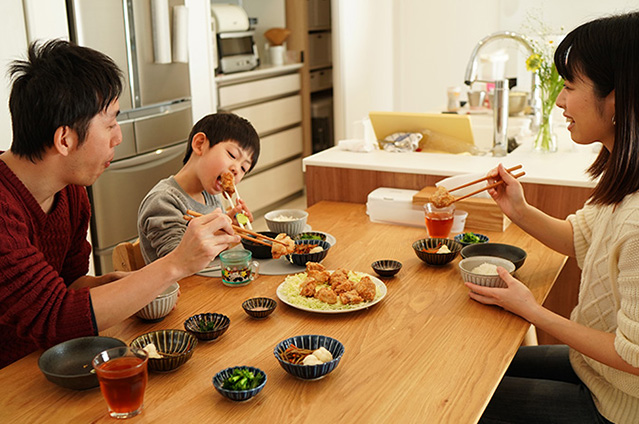 家族全員がそろう日の夕食は、菜々さん自慢の「二度揚げ唐揚げ」。
