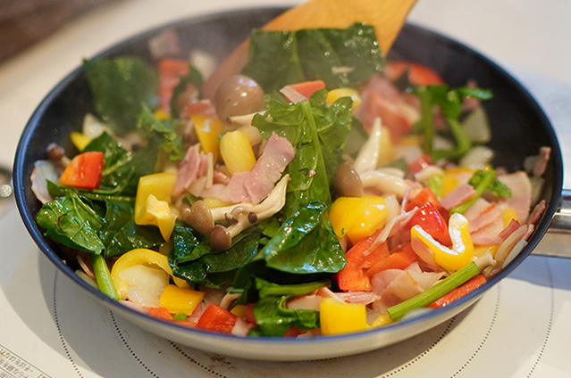 新婚の小さなアパートのキッチンは狭いけれど、部屋の卓上コンロも駆使して作ります。いつかは夫婦で美味しいカフェを開くのが夢です。