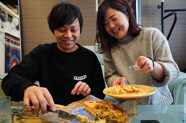 2人共通の趣味は、「食べ歩き」です。いろいろなお店に行くけれど、自宅で作る出来たてのキッシュの味はどこにも負けない、と感じています。