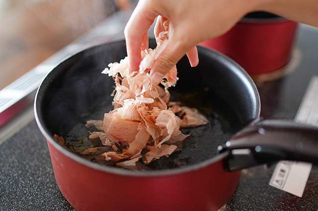 味噌汁の具材には、地元育ちの"湘南トマト"を入れます!