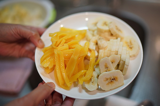 鍋で温めて作るので、"フィリピン風のお汁粉"とも呼ばれています。ココナッツミルクの風味で好きなフルーツやタピオカなどを入れて作ります。芋と団子の食感も最高です。サツマイモの代わりに紫芋を使うと、色が綺麗で面白いデザートになります。マリコさんにとって大切なおふくろの味、特に夏のデザートにオススメです。