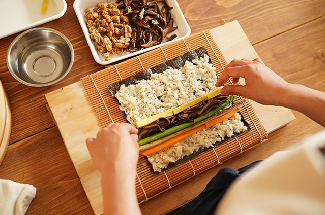 その中でも一番の自信作は、自家製の寿司酢で作った玄米ご飯を、海苔巻きにする"田舎巻き寿司"