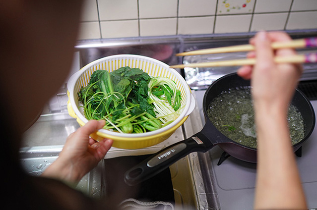 子供が「七草粥」の話を学校で聞いてきて、その話を聞いたことをきっかけに、作ってあげたのが最初でした。全ての材料が揃わない場合は、好みの青菜を使いながら、七種類の葉物を使ってお粥を炊いています。