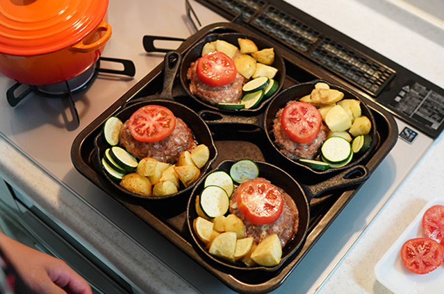 『初めての料理、スキレットハンバーグ』