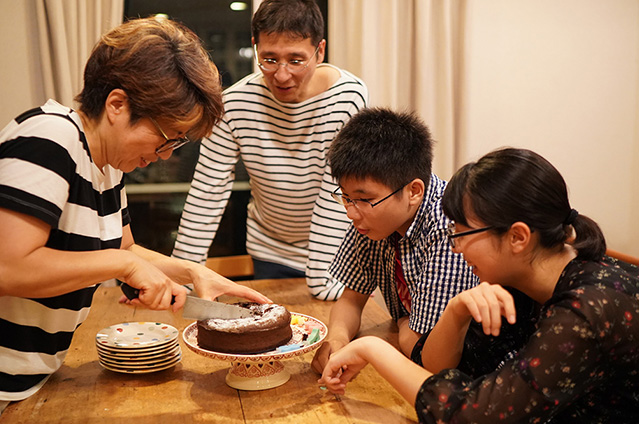 以前仕事でイギリスに駐在していた時、同僚たちが自分の誕生日に、自分で焼いたバースデーケーキを持ってきて社内でふるまう習慣に驚き、その楽しみ方に共感したそうです。以来帰国後も誕生日パーティーには、お父さんが自分でケーキを焼き、お祝いするそうです。