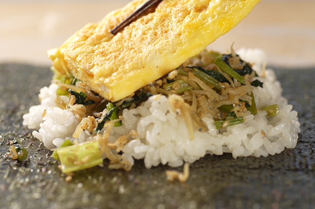 具材は、焼き鮭、きんぴら、ひじきの煮物、小松菜とちりめんじゃこ炒め、玉子焼、鶏そぼろが定番。これにおひたしと汁物が用意できれば上出来です。