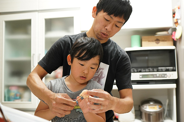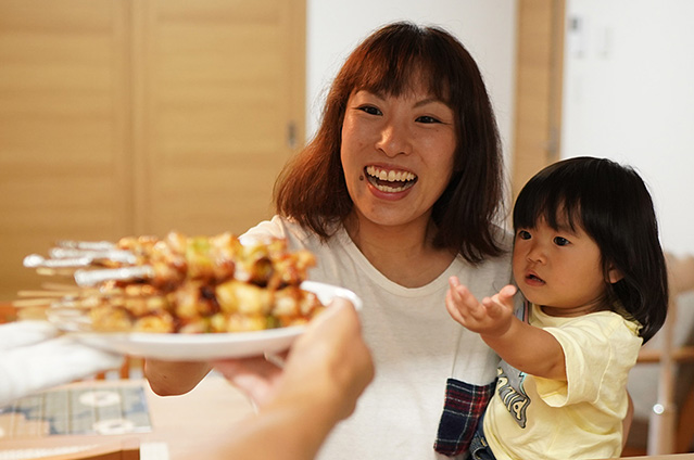 その息子さんの姿を見て、お父さんは、「焼き鳥を我が家で作ろう!!」と、家で焼き鳥を作ることを決めたそうです。家で作るようになってからは、お父さんが飲み会に行くと聞くと、息子さんは「お父さんこっちにも焼き鳥作ってなー」と言うようになりました。家で焼き鳥を作る際には、一生懸命料理するお父さんを見ながらつまみ食いをする息子さんと朋子さん。そして、とにかく串を持ちたくて騒ぎ出す娘さん。家族みんなでワイワイする、とってもにぎやかな「おうち焼鳥」を楽しんでいるそうです。