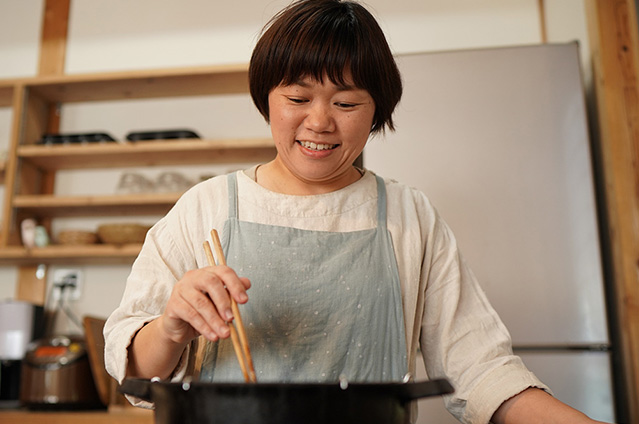 結婚12年目、夫と二人三脚で工務店を切り盛りするかおるさん。二人の共通の好物は「チキン南蛮」です。