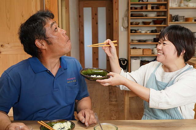 二人はチキン南蛮を好きすぎて、結婚式ではウェディングケーキではなく、かおるさんが作った「チキン南蛮」でのファーストバイト(新郎新婦が一緒に料理を切り分け、お互いに食べさせ合い愛情の深さをアピールする演出)をするほど。