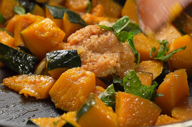 『秋のおすそ分け、カボチャの味噌炒め煮』