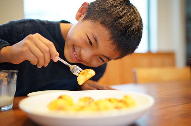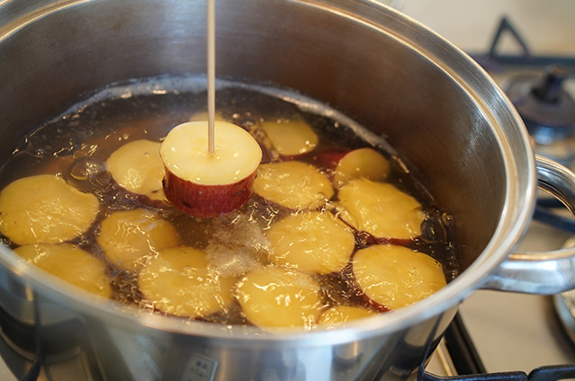 スイートポテトは、たくさん食べてしまうとお腹いっぱいになってご飯が食べられなくなるので、"ひとくちサイズ"に仕上げます。