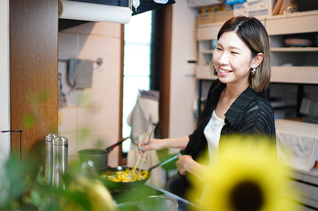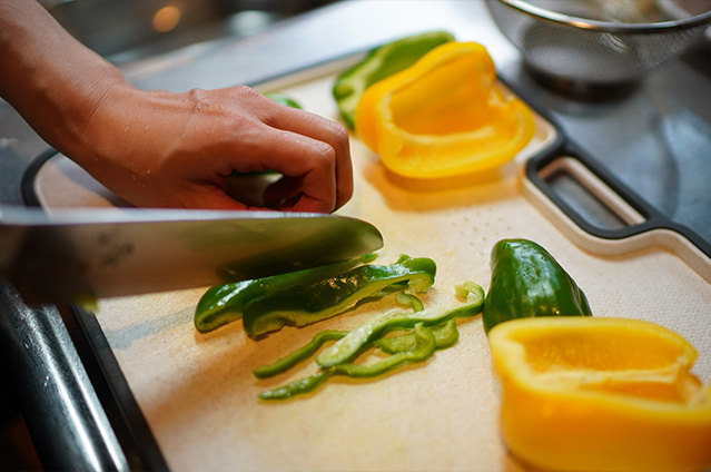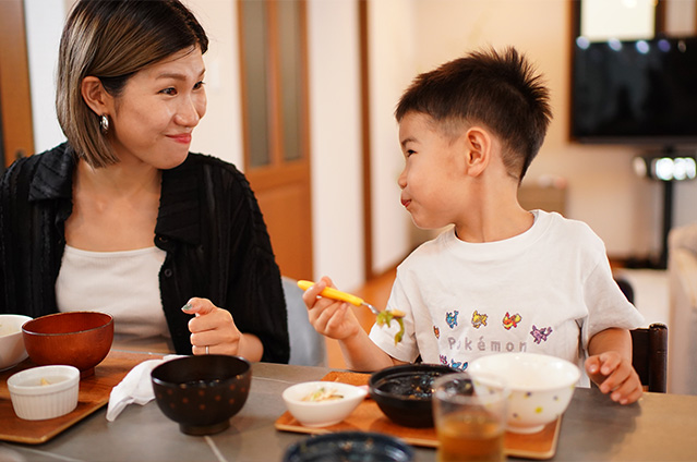 美紗さんのお子さんたちは、ちょっとピーマンが苦手。みじん切りにしたり、肉詰めにしてみても、なかなか食べてくれません。ところが、不思議なことに「チンジャオロース」にすると、嬉しそうにパクパク食べてくれます。お買いものに一緒に出かけて、好きな色を選ばせてあげると、ピーマンと形がそっくりなパプリカもたくさん食べられるように。色々と工夫してみた中で、美味しそうにしっかり食べてくれる料理に出会えたのが嬉しくて、今度は苦手なきのこを克服できるように、美紗さんが新しいメニューを考えているところです。