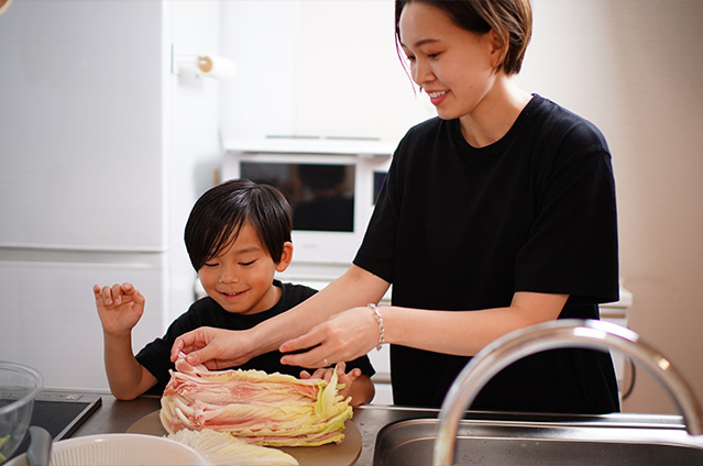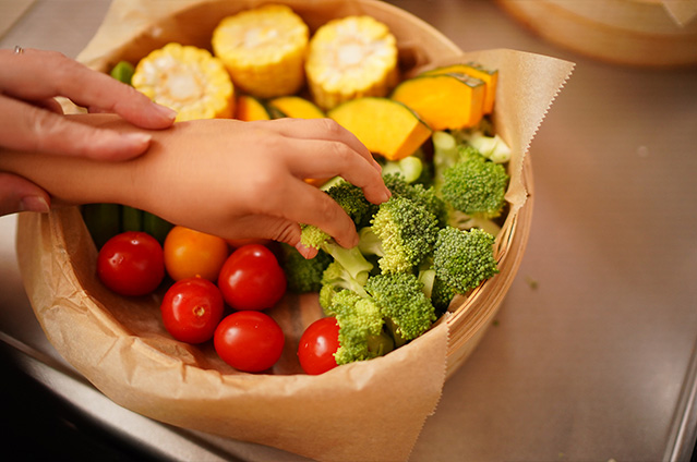 美希さんは、日々の食卓に蒸し料理をよく取り入れています。一度にいくつもの品ができ、素材本来の味を引き立ててくれるうえ、忙しいときでも手軽に作れる万能の調理法です。噛み切りにくいお肉もふんわり柔らかく仕上がるので、小さなお子さんでも安心して食べられます。たくさんの野菜やお肉を一緒にバランスよく楽しめる「せいろ蒸し」は、家族みんなに寄り添う、やさしい料理です。