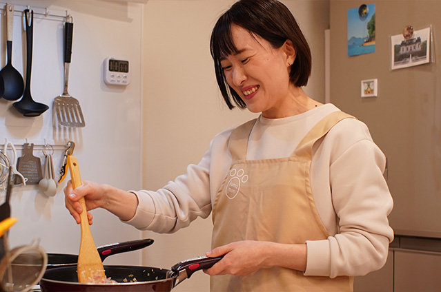 鶏肉とタマネギ、卵で作るこの一品は、ひいおばあさまから代々受け継がれてきた家族の味。一昨年生まれた息子さんのために、初めて彩子さんもレシピを教わりました。いつかこの味を好きになってくれたらと、彩子さんは願っています。