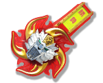 アカニンジャーが超絶勝負チェンジャーを使用して“シュリケン忍法超絶変化”!獅子王と融合してパワーアップした姿。全身を鎧う城壁のようなジョウ忍カッチュウにより超絶的攻撃忍法を発現できる。忍者一番勝負刀を振るい、これまで以上に強力で奇想天外なシュリケン忍法を使って大暴れ!