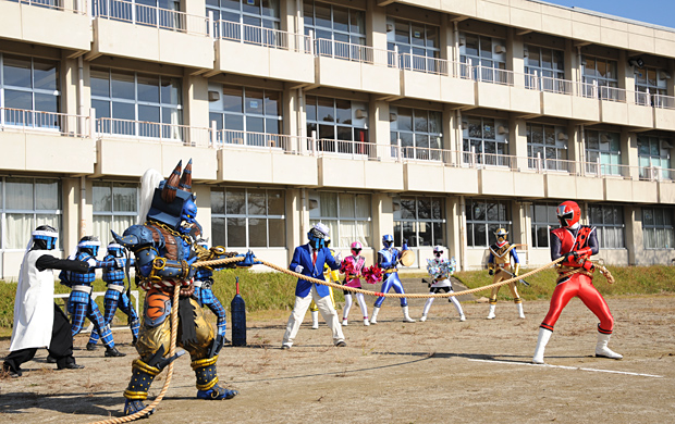 ニンニンジャーのもとに、牙鬼萬月から当主継承披露目式の招待状が届く。罠だと気付きながらも、天晴たちは披露目式に乗り込むことに。すると、超上級妖怪シュテンドウジが五番勝負を挑んでくる。一番勝負は、八雲とケンカ凧で対決。八雲の魔法によりニンニンジャーが勝利する。二番勝負は、天晴、八雲、凪が騎馬となり、上に乗った霞が弓矢で的を射る流鏑馬(やぶさめ)対決。しかし、シュテンドウジが卑怯な手を使って勝ってしまう。三番勝負は、風花とキンジが得意のダンスで対決するが、またしてもシュテンドウジが勝利。四番勝負は、天晴が綱引きで対決し、ニンニンジャーの勝利。最終勝負は、腕相撲で対決することになるが、シュテンドウジが強烈な匂いの息を吐くため、向かいあうことができない。そこに、助っ人として獅子王が現れる。天晴は、人の手は借りず自分たちのやり方で勝つと、助けを断る。しかし、獅子王は、一人前になることは人に頼らないということではなく、人の意見に耳を傾けられる大人になるということだと諭す。獅子王の助けもあり、ニンニンジャーは五番勝負に勝利。