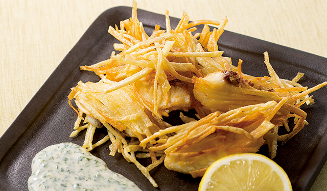 鯛のじゃがいも衣揚げ 木の芽マヨネーズ