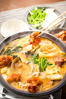 今日ご紹介する料理は、「土井流 キムチ鍋」です。土井流のポイントは白味噌!白味噌の甘みとコチュジャンの辛みがマッチして、なんとも上品な味わいの「大人のキムチ鍋」になるんです。