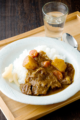 牛バラ肉(カレー用煮込み肉)・・・250g 塩・・・小さじ1 玉ねぎ・・・2個(400g) じゃがいも・・・2個(200g) にんじん・・・1本(120g) 生姜・・・20g にんにく・・・1片 カレー粉・・・大さじ2 小麦粉・・・20g(大さじ3と1/2) 水・・・5カップ バター・・・30〜40g サラダ油・・・適量