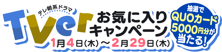 - 本企画ご応募後に、TVerアプリやTVerのウェブサイト等で「お気に入り登録」を解除しても、ご応募は取り消されません。