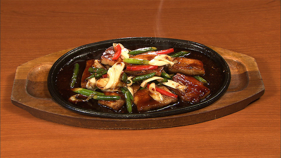 B厚切りバラ肉鉄板焼きつけホイコーロー -