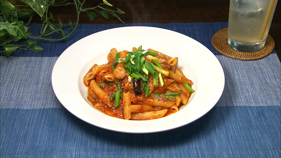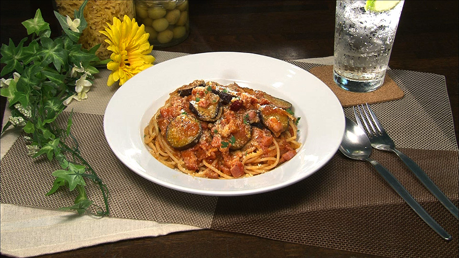 Aなすとパンチェッタのアマトリチャーナ スパゲティ -